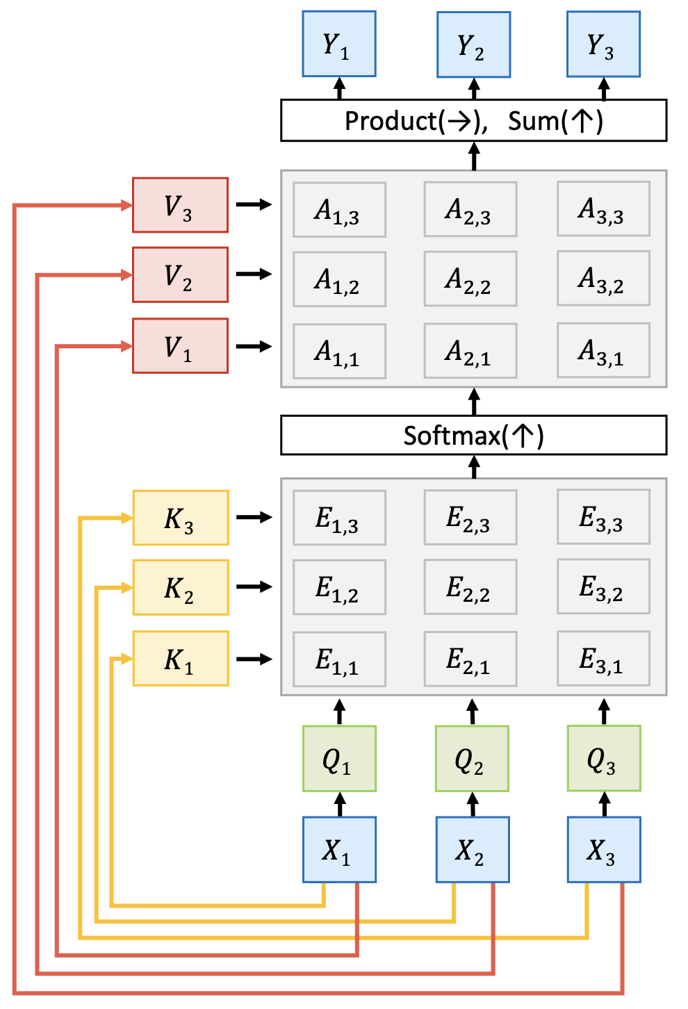 For instance if the input vectors are in order the query vectors will be in order , same for the output vectors.