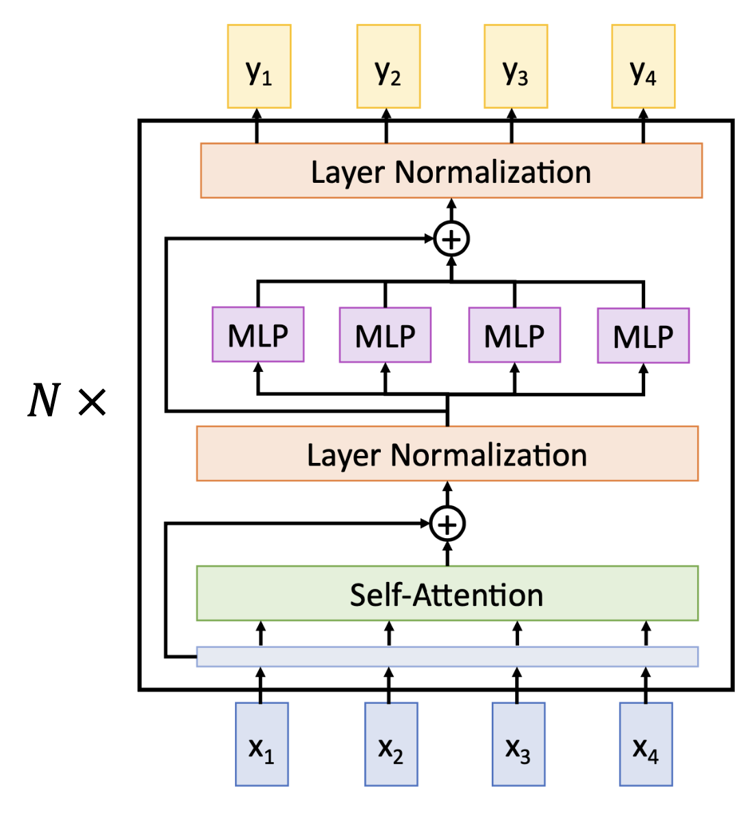 A transformer is a sequence of transformer blocks. In “Attention Is All You Need” they use 12 blocks, D = 512.