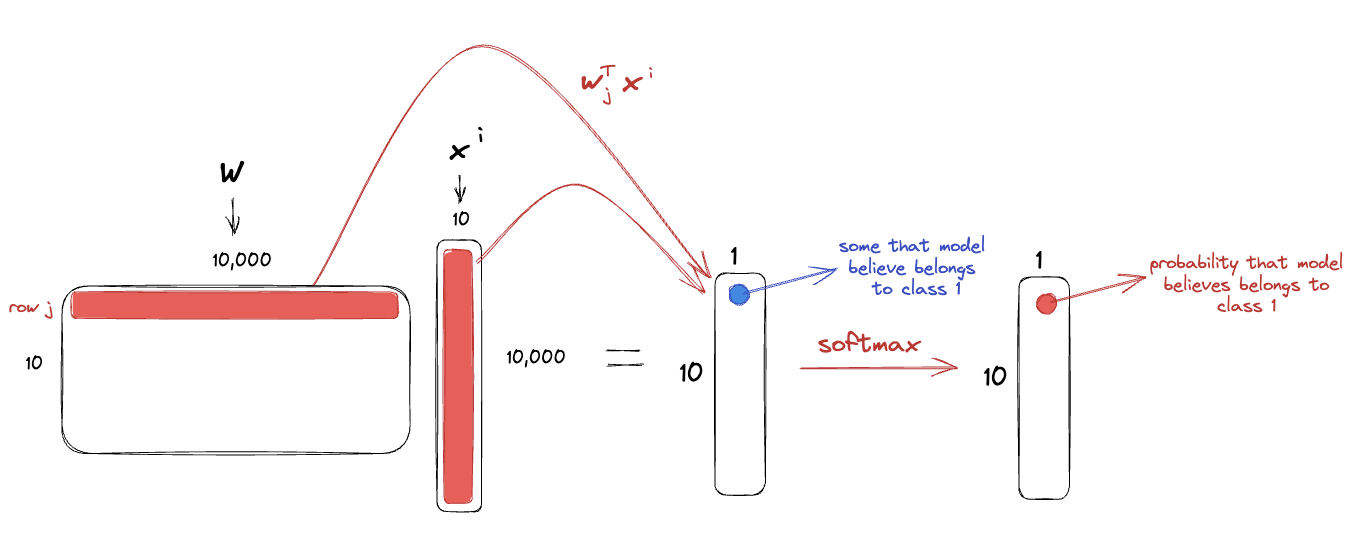 Given , we want to maximize the value above. This is to maximize the probability as the Softmax function returns the probability: